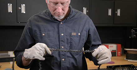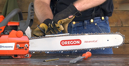 Qué necesitará: Guantes, Anteojos protectores, Kit de lima para motosierra, Cadena para motosierra.